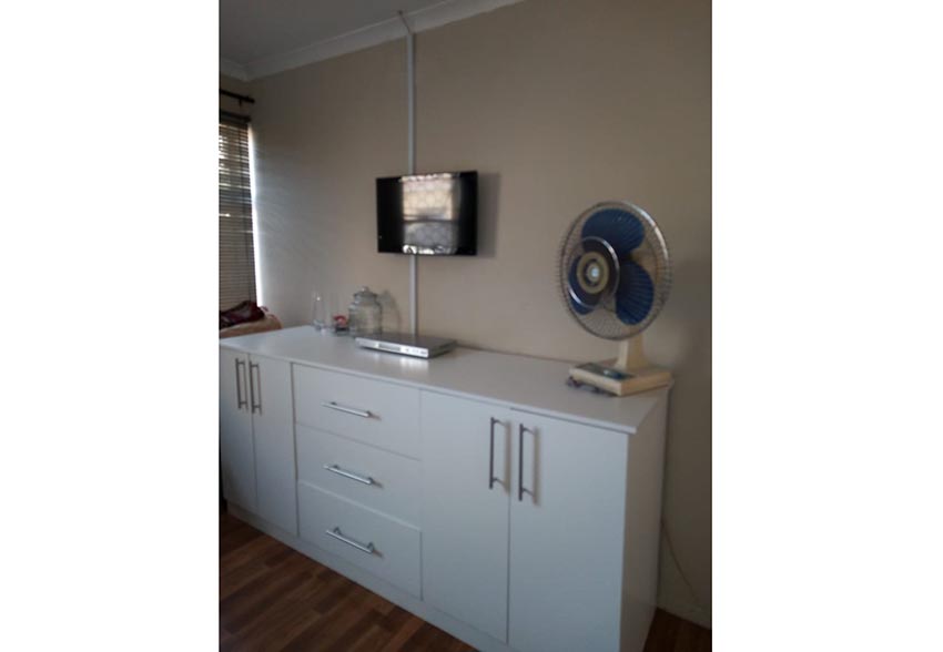 There are two spacious bedrooms, one with built in cupboards and laminated flooring.