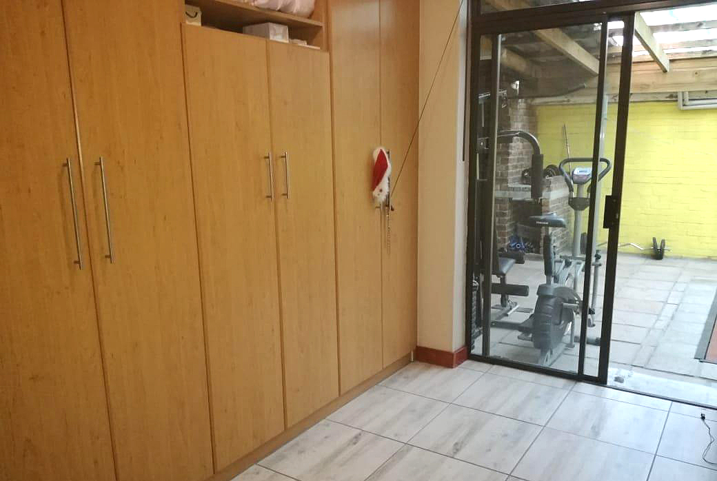 3 bedrooms with laminated flooring, 2 of which has built in cupboards.
