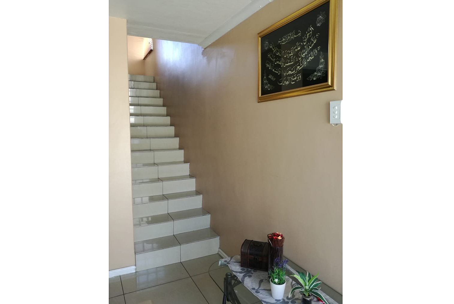 Tiled staircase.