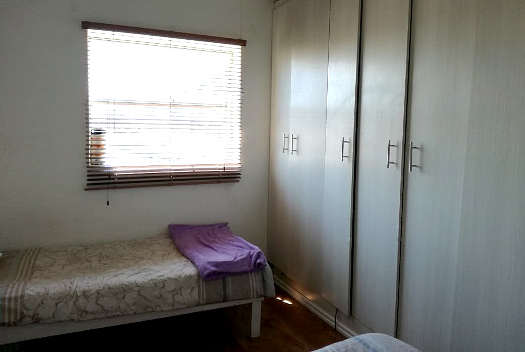 2 x bedrooms with laminated flooring and wall to wall built in cupboards.